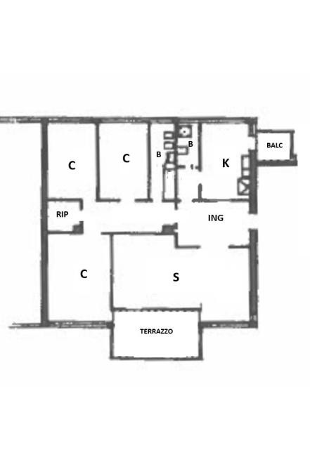 L'abitazione è composta da un ampio ingresso, il salone doppio con affaccio sul terrazzo, la cucina abitabile con balconcino di servizio e bagno / lavanderia, 3 comode camere, il secondo bagno, ed il generoso ripostiglio. Completano la proprietà la cantina ed il box posti al piano interrato raggiungibili anche con gli ascensori.